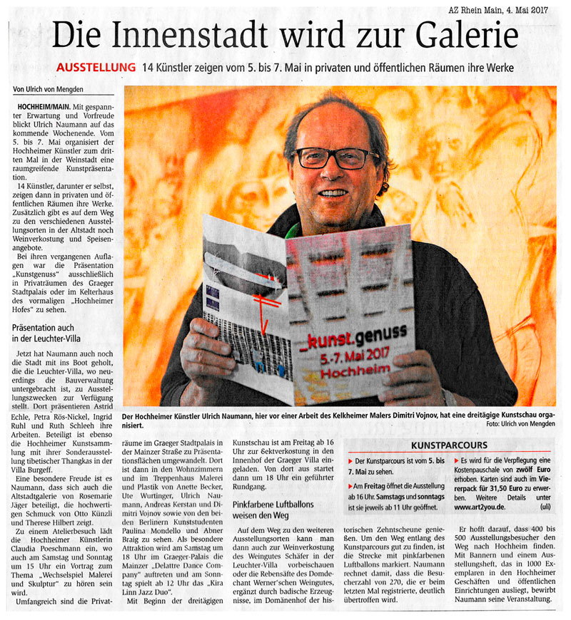 Ulrich Naumann und sein Netzwerk befreundeter Künstler treten unter dem Label art2you gemeinsam auf nationalen wie internationalen Kunstmessen auf und veranstalten in unterschiedlicher Besetzung regelmäßig Kunstevents. Sein Weg zur professionellen Kunst ging außergewöhnlich schnell. Hilfestellung erhielt er dabei von einem sehr renommierten Künstler. Wer das ist, hat er uns auf der #DiscoveryArtFair in #Frankfurt verraten…